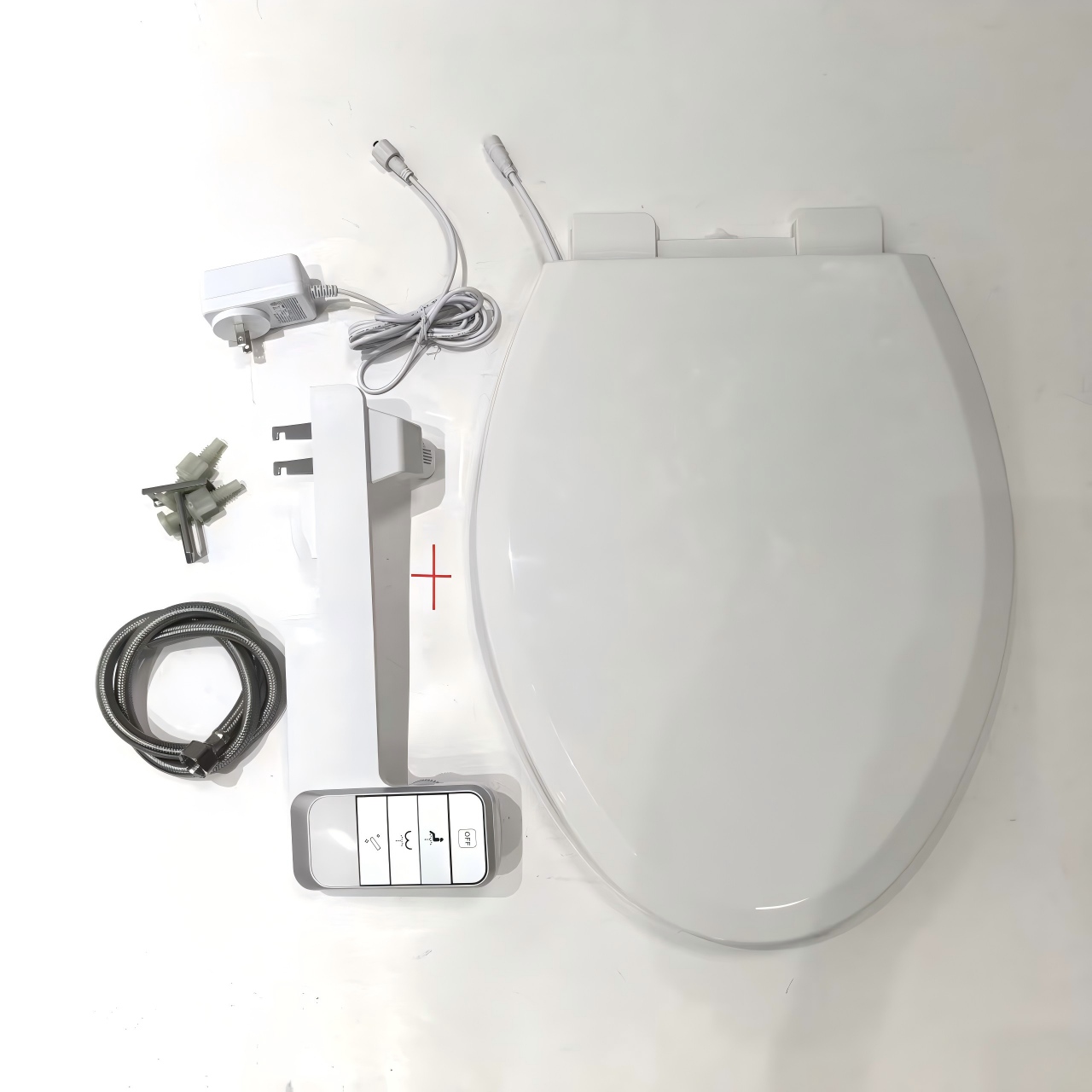 A cheap heated toilet seat with bidet attachment featuring a one-click quick-release function.